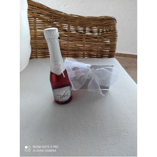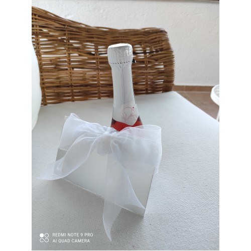 Χαρτόνι καθρέφτης ματ ασημί με κορδέλα οργάντζα 50mm δεμένο σε μικρή σαμπάνια!!! Μια πρωτότυπη ιδέα προσκλητηρίου σε συνδυασμό με μπομπονιέρα! Η τιμή δεν συμπεριλαμβάνει την σαμπάνια. Αν το επιθυμείτε συμπληρώστε το στα σχόλια. Παράδοση εντός 15 ημερών από την καταβολή του 50% του συνολικού ποσού.