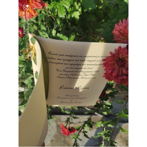 Προσκλητήριο Γάμου χειροποίητο με ελιά χρυσή